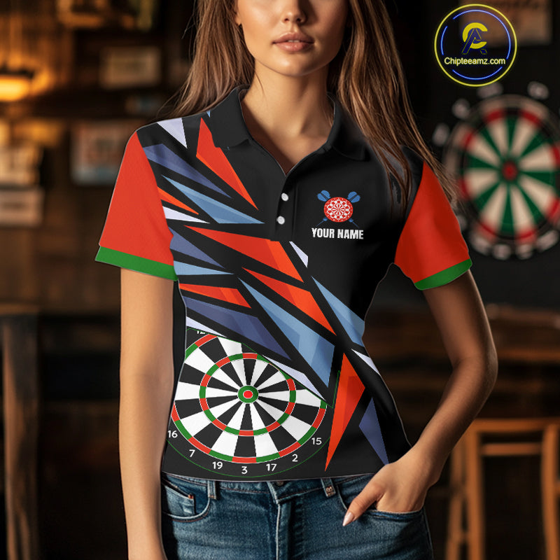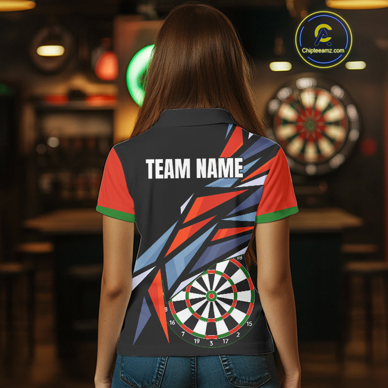 Personalized Red, Blue & Black Darts Shirt For Women Custom Darts League Team Jersey Polo & 1/4 Zip TDM4409