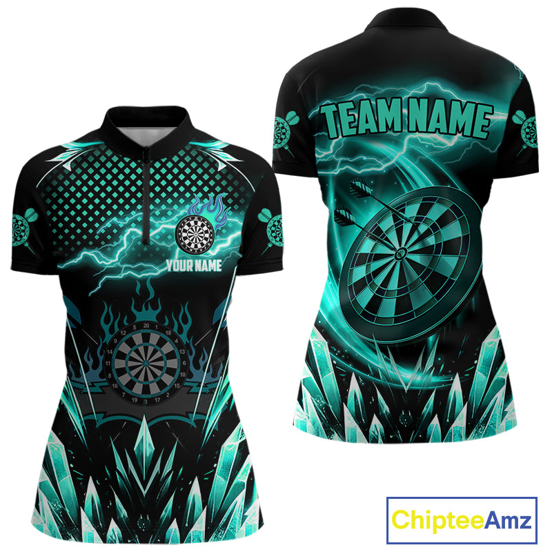 Personalized Turquoise Icy Lightning Darts Shirt For Women Custom Dart League Jersey Polo & 1/4 Zip TDM4466