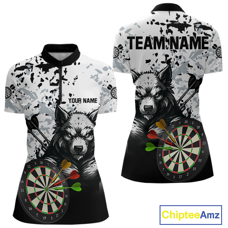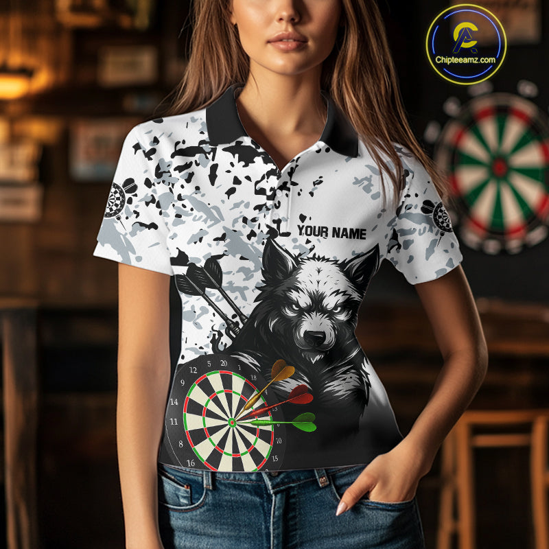 Personalized Grunge White Black Funny Wolf Darts Shirt For Women Custom Team Darts Jersey Outfit TDM4494