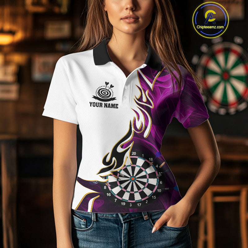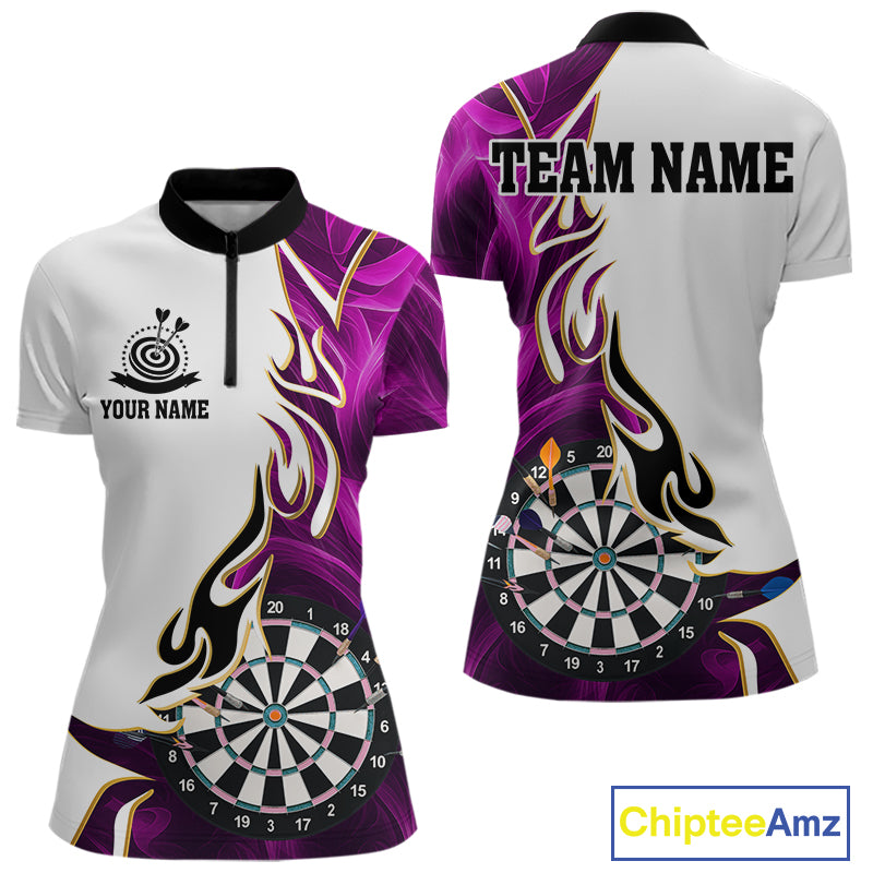 Personalized Purple Flaming Darts Jersey For Women Custom Darts Team Shirts Polo & Quarter Zip TDM4513