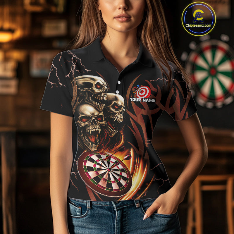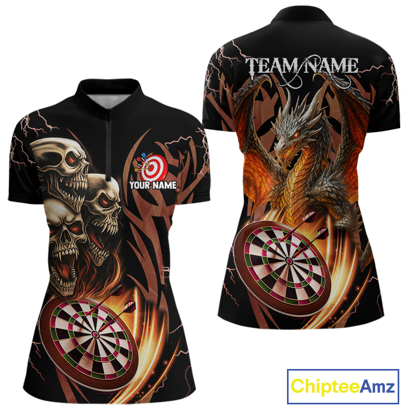 Personalized Skull & Dragon Darts Shirt For Women Custom Lightning Dartboard Team Jersey |Orange TDM4535