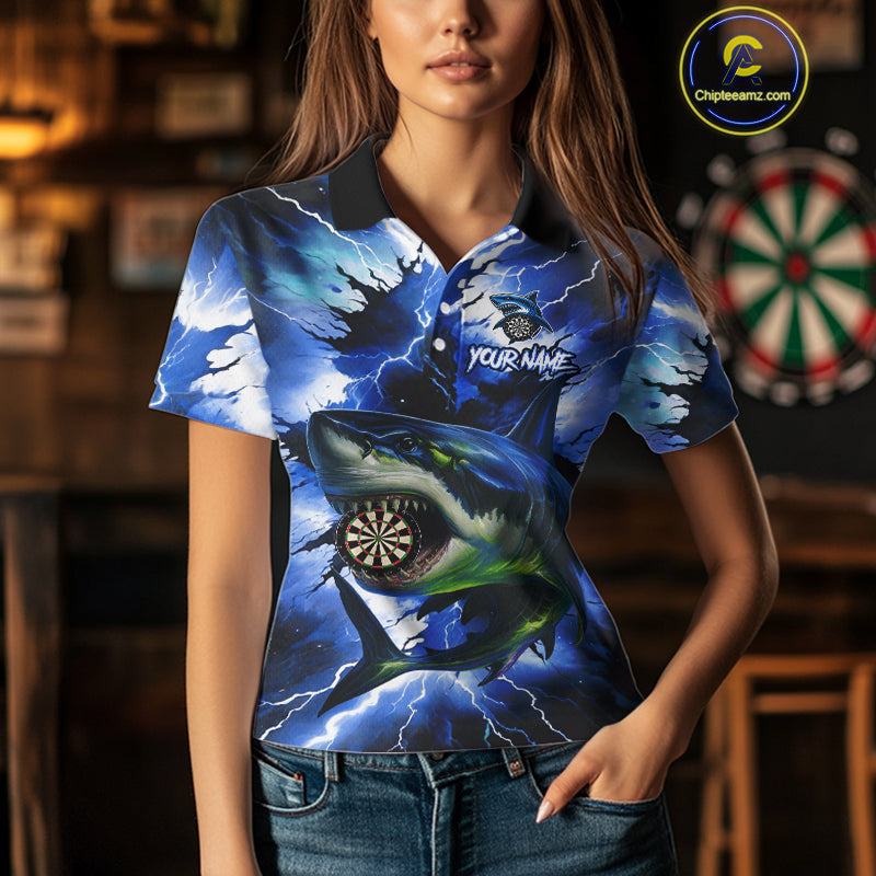 Thunder Lightning Storm Shark Darts Shirt For Women Custom Blue Darts Team Jersey Polo & Quarter Zip TDM4569