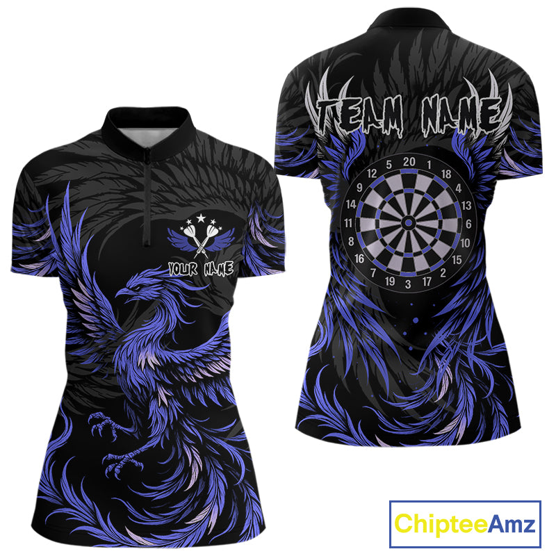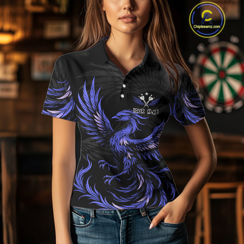 Personalized Phoenix Dartboard Wings Women's Dart Shirts Custom Blue And Black Darts Team Jerseys TDM4584