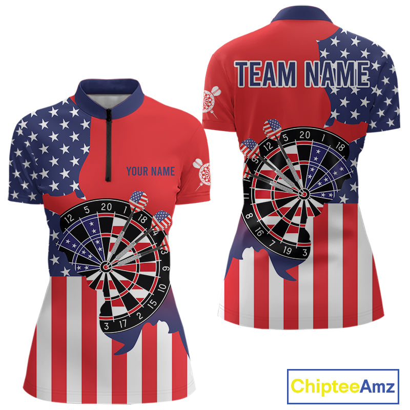 American Flag Dartboard Patriotic Darts Shirt For Women Custom Darts Team Jersey Polo & 1/4 Zip TDM4608