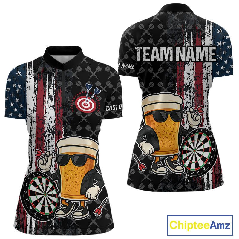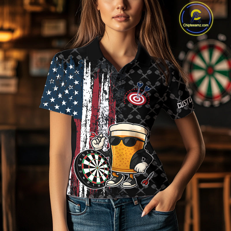 Vintage Grunge American Flag Funny Beer Darts Shirt For Women Custom Patriotic Darts Team Jerseys TDM4616
