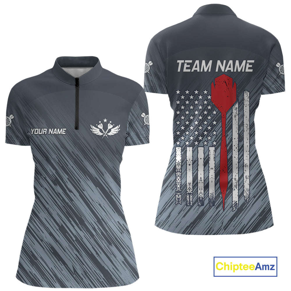 American Flag Grey Grunge Darts Polo & Quarter Zip Custom Dart Shirt For Women Patriotic Dart Jersey TDM4699