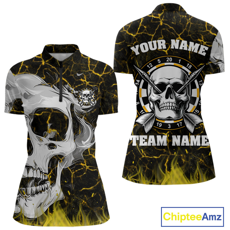 Personalized Yellow 3D Fire Crack Skull Dart Shirts Custom Scary Dart Shirts For Women Dart Jersey TDM4761
