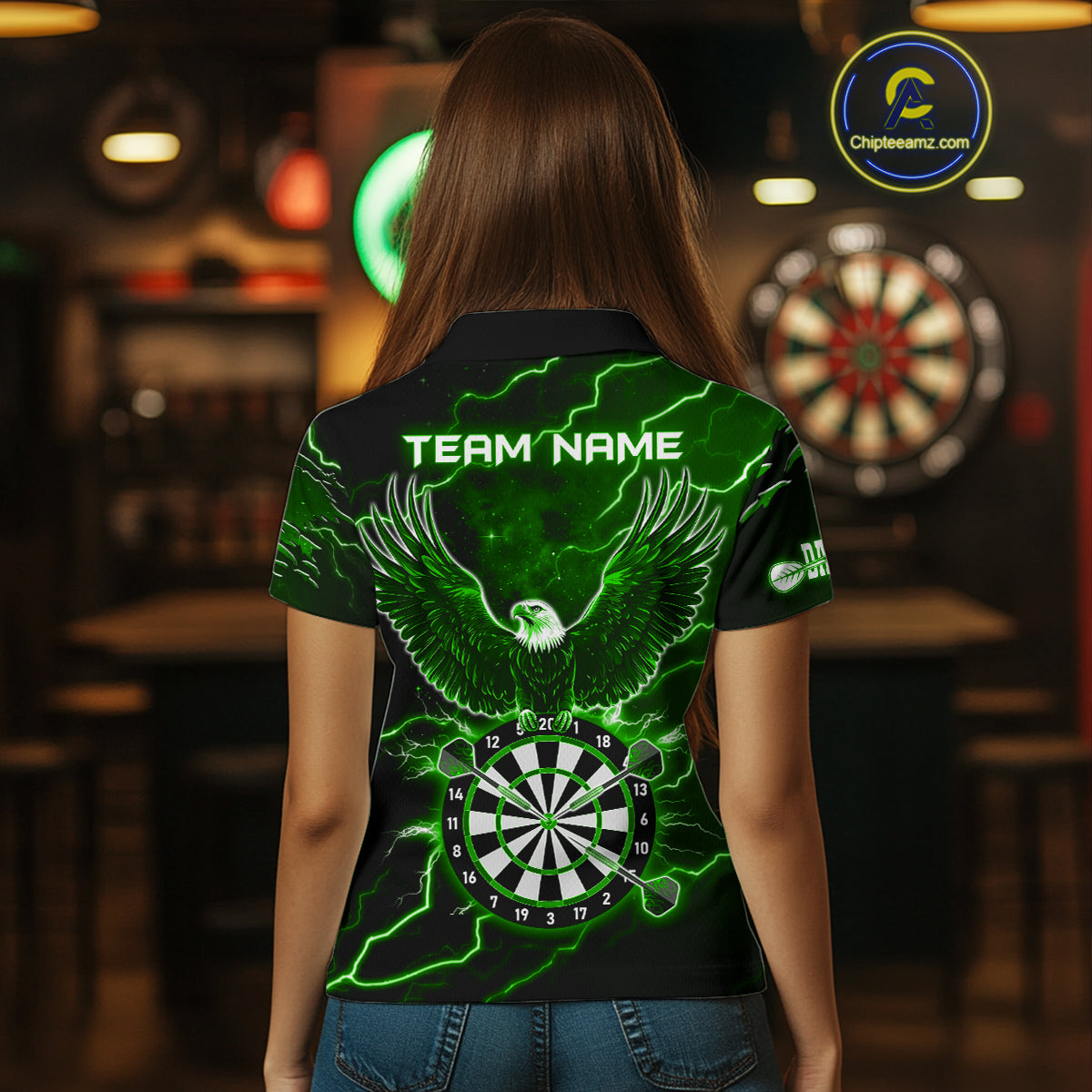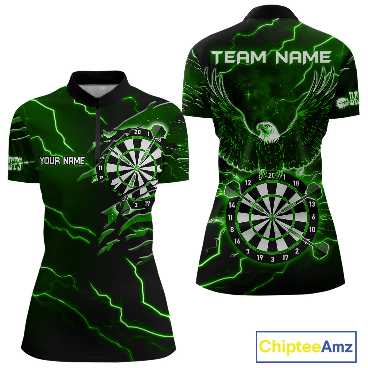 Personalized Thunder Lightning Eagle Green Darts Shirt Polo & Quarter Zip For Women Dart Team Jersey TDM4834
