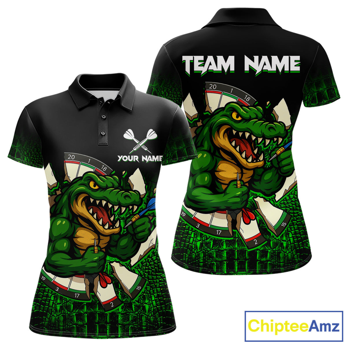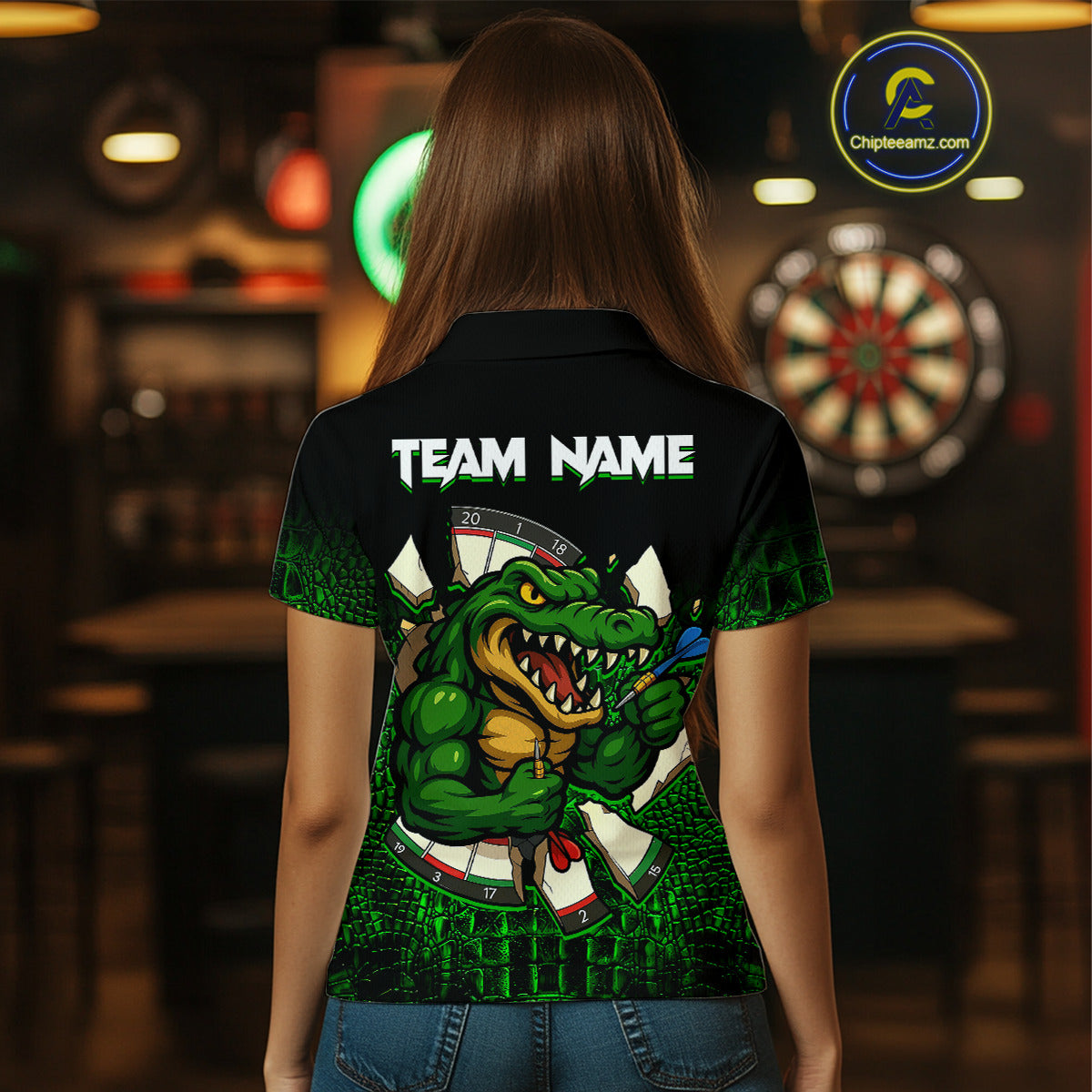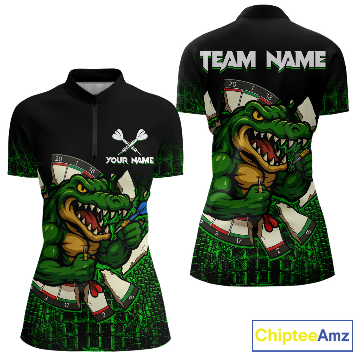 Black And Green Funny Alligator Darts Shirt For Women Custom Darts Jersey Team Polo & 1/4 Zip TDM4877
