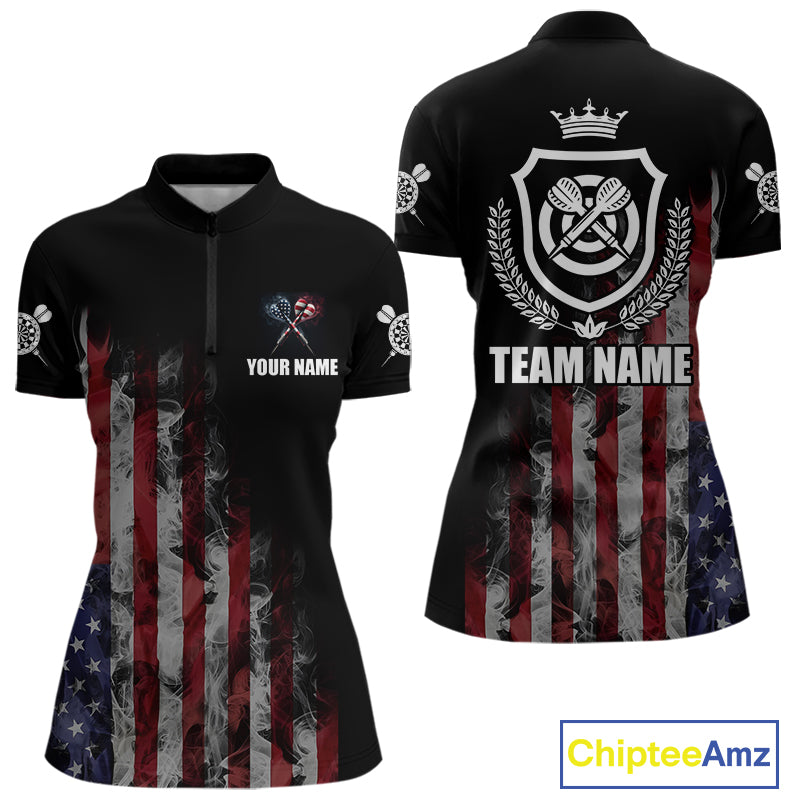 Customized American Flag Smoke Darts Shirt For Women, Patriotic Darts Jersey Team Polo & 1/4 Zip TDM4887