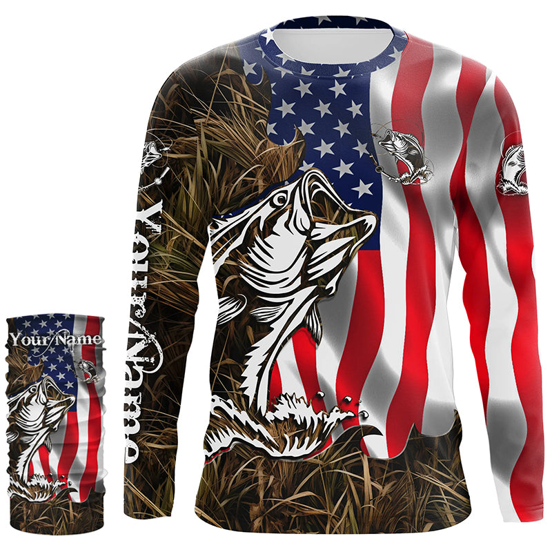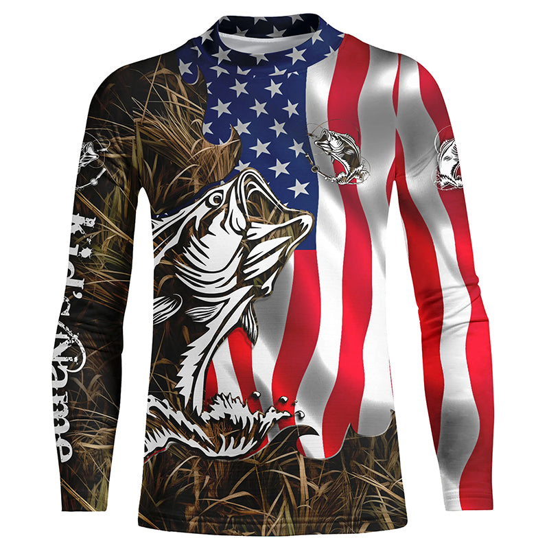 American Bass fishing flag camo Custom sun protection performance fishing shirts for men, women, kid NQS5758