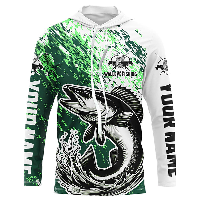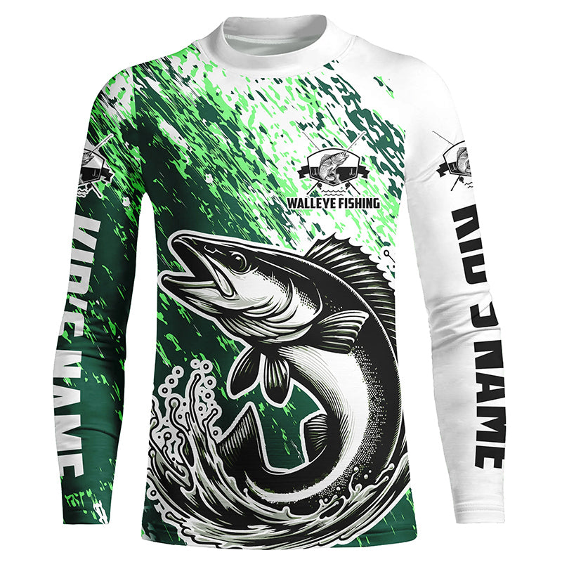 Custom Walleye Long Sleeve Fishing Shirts For Men And Women, Walleye Fishing Jerseys | Green IPHW5814