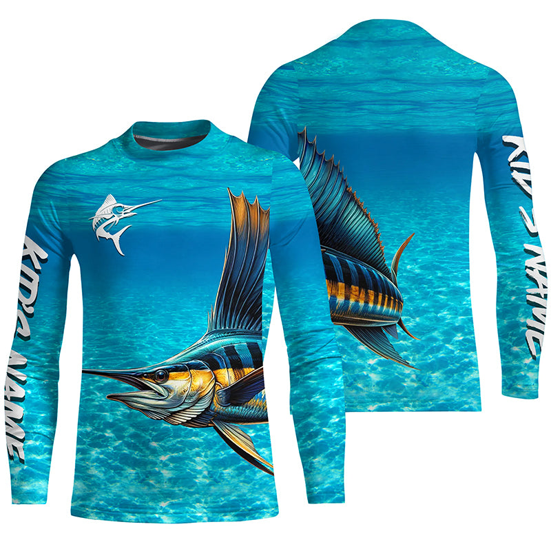 Sailfish fishing blue water camo Custom Name sun protection long sleeve fishing shirt for men, women NQS5553