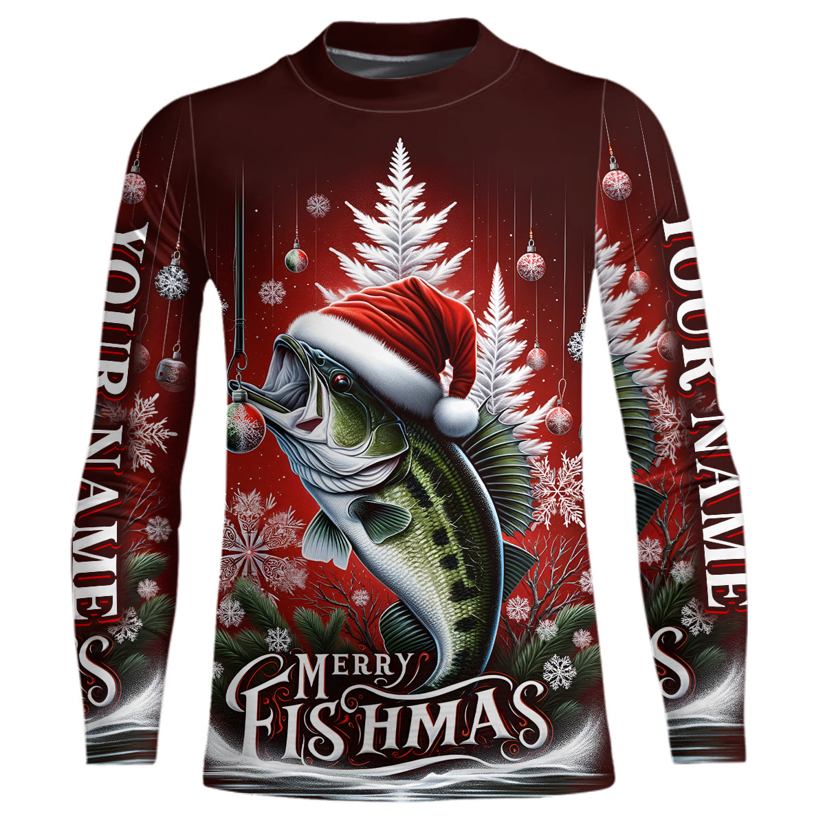 Personalized Bass Christmas Fishing Shirts Merry Fishmas Fishing Gifts For Men, Women And Kids IPHW5551