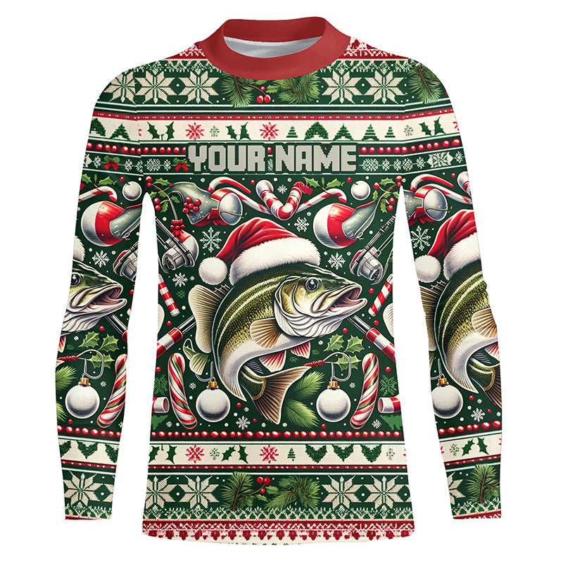 Walleye Fishing Ugly Sweater Pattern Christmas Custom Fishing Shirts Personalized Fishing Gifts IPHW5568