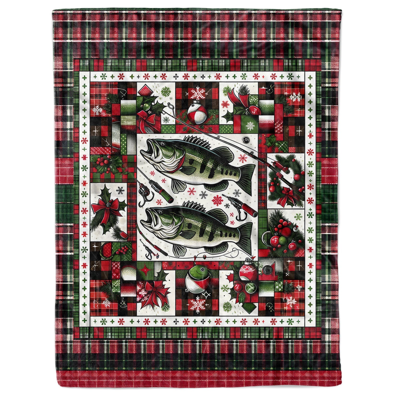 Largemouth Bass Fishing Christmas Plaid Fleece Blanket Xmas Gifts For Fishing Lovers IPHW5671