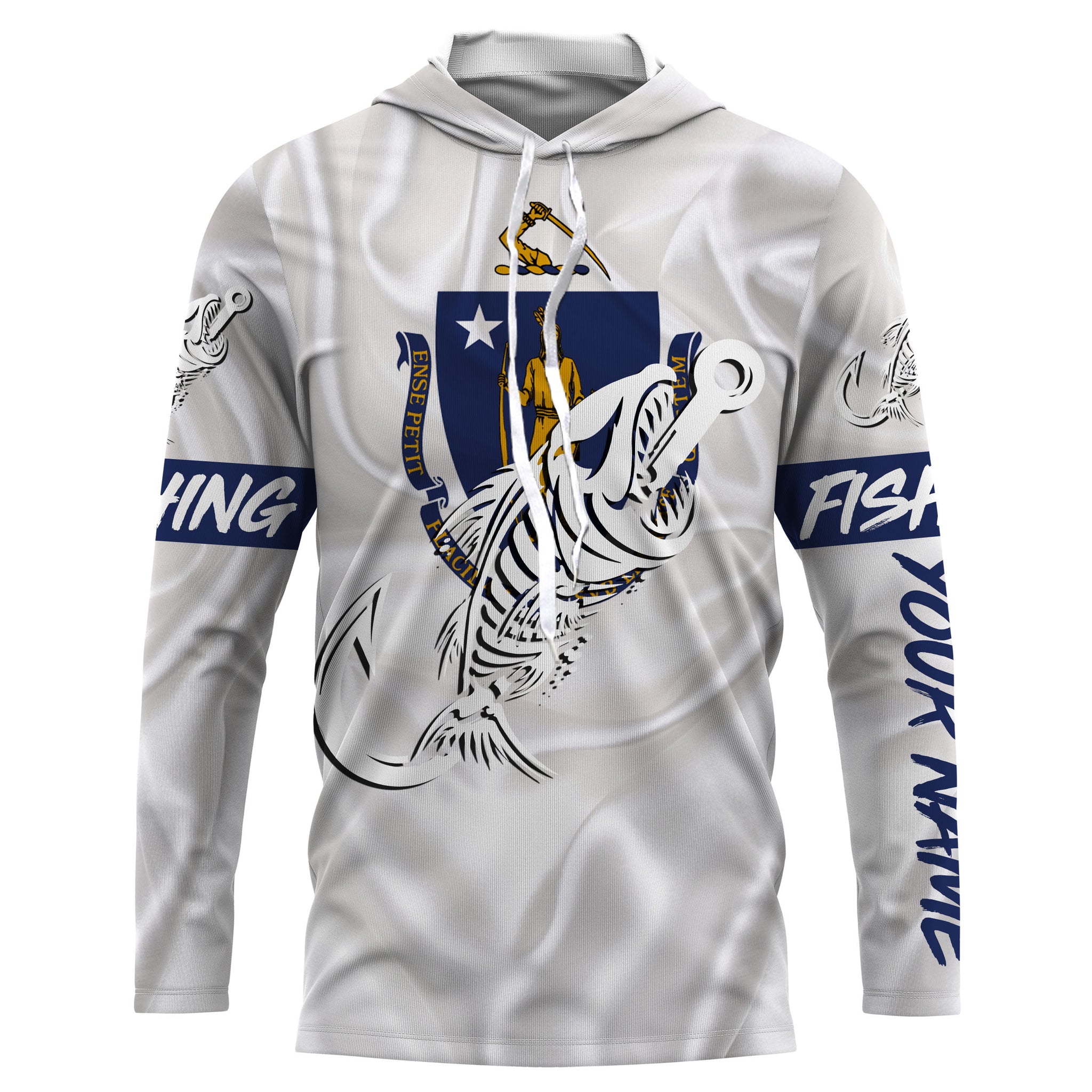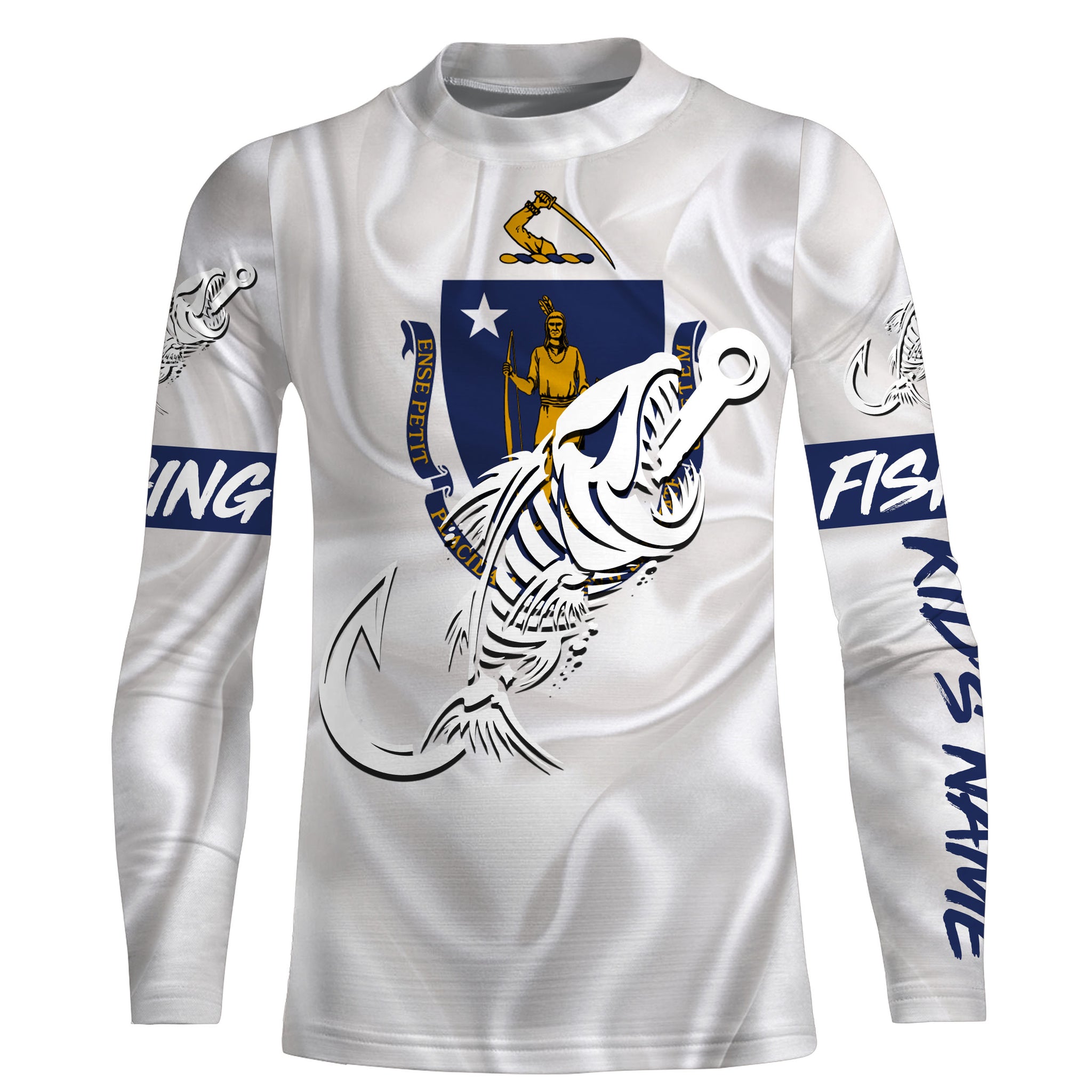 MA Massachusetts Fishing Flag Fish hook skull Custom sun protection fishing shirts for men, women, kid NQS3396