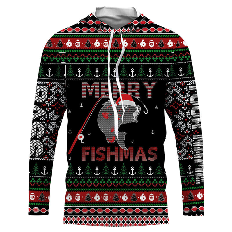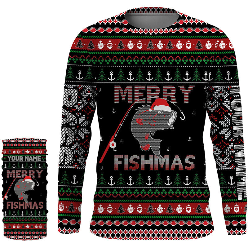 Ugly Fishing Christmas Largemouth Bass Merry Fishmas Custom Name Shirts, Christmas Gift for Fisherman FSD3638