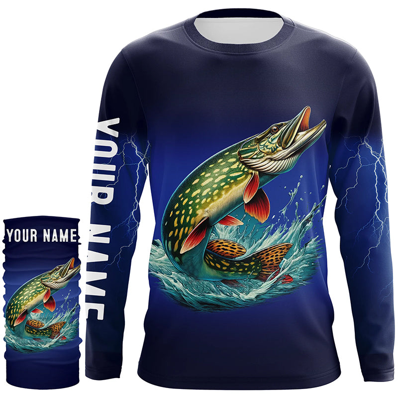 Northern Pike Fishing blue lightning 3D All Over printed fishing shirts Customized Fishing apparel NQS318