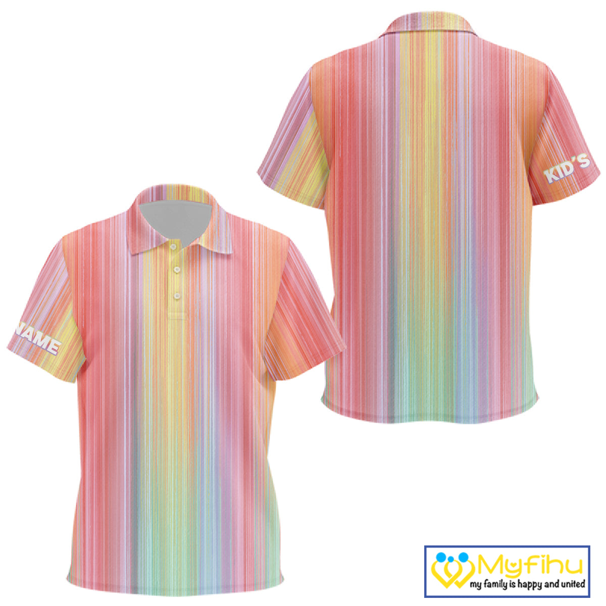 Colorful rainbow stripe pattern Kid golf polo shirt custom best golf apparel for Kid NQS10406