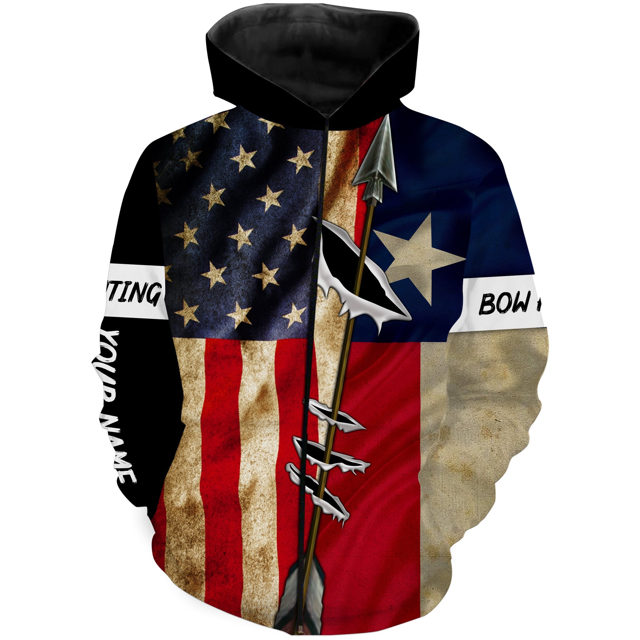 Archery Bowhunting USA and Texas flag custom Name All over printed Shirts, Hoodie - Personalized Gifts FSD3092