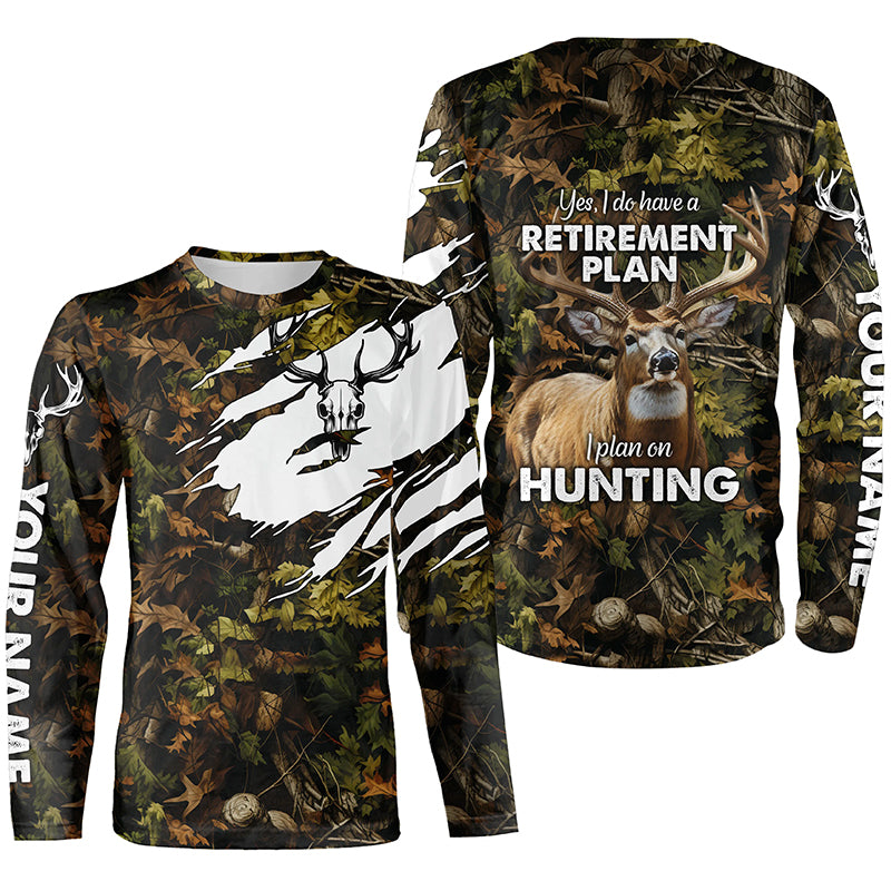 "Yes I Do Have A Retirement Plan I Plan On Hunting" Deer Hunting camouflage Custom Hunting Shirts NQS2564