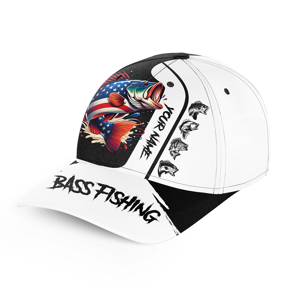 Bass Fishing 3D American Flag patriotic Custom fishing hat Unisex Fishing Baseball Angler hat NQS2229