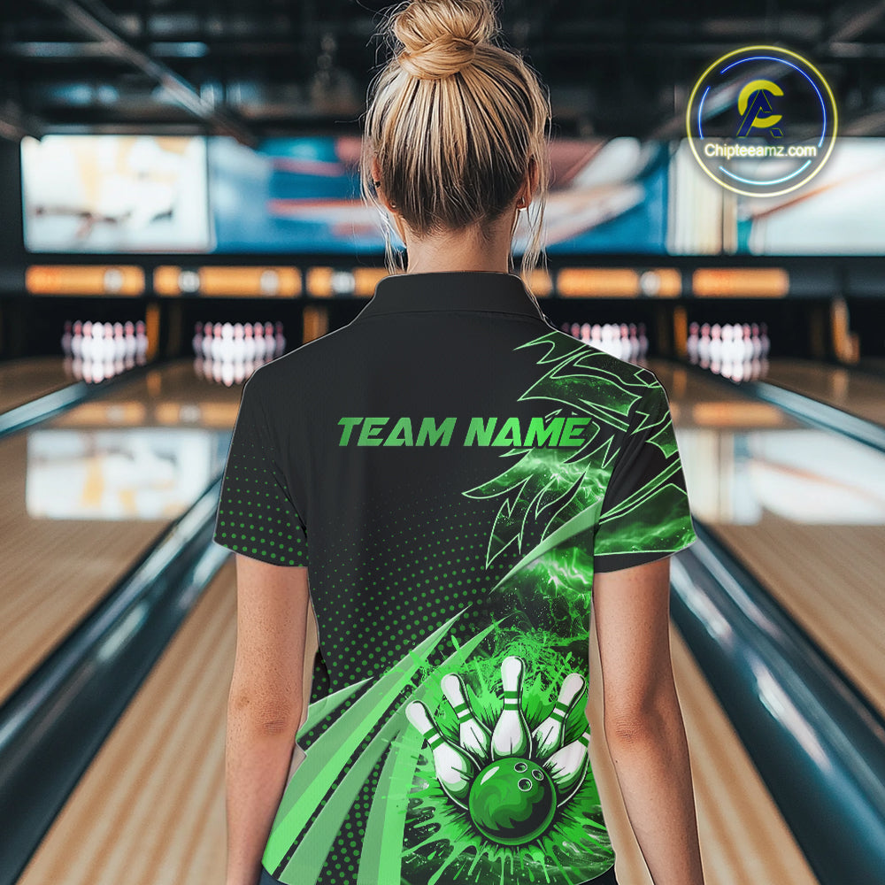 Black and Green Bowling Polo, 1/4 zip shirts For Women Custom Team Bowling Jerseys, Gift For Bowlers NQS10787