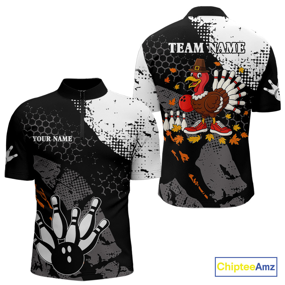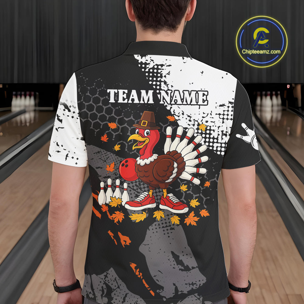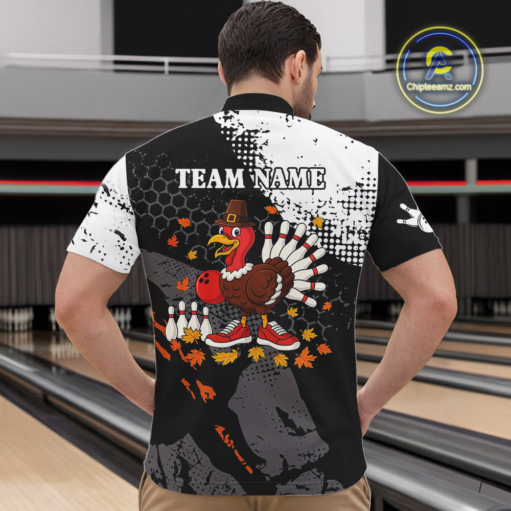 Black and white Mens bowling shirts Custom retro Turkey bowling Thanksgiving bowling team jersey NQS10723