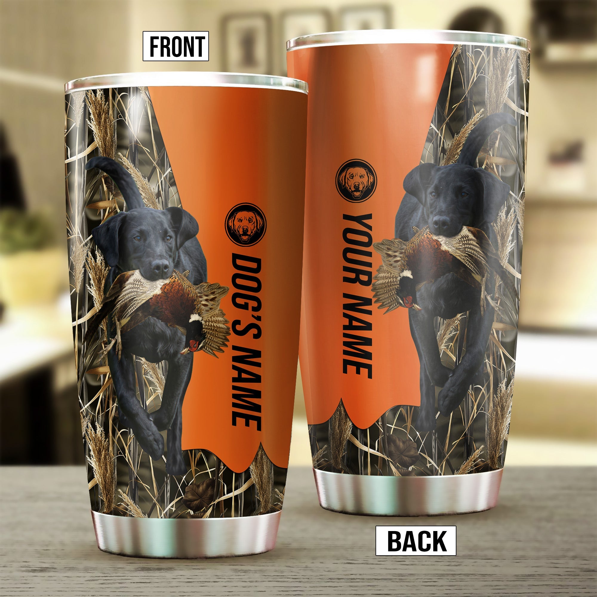 Black Labrador Retriever Birds & Deer shed Hunting Dog Custom name Stainless Steel Tumbler Cup FSD4284
