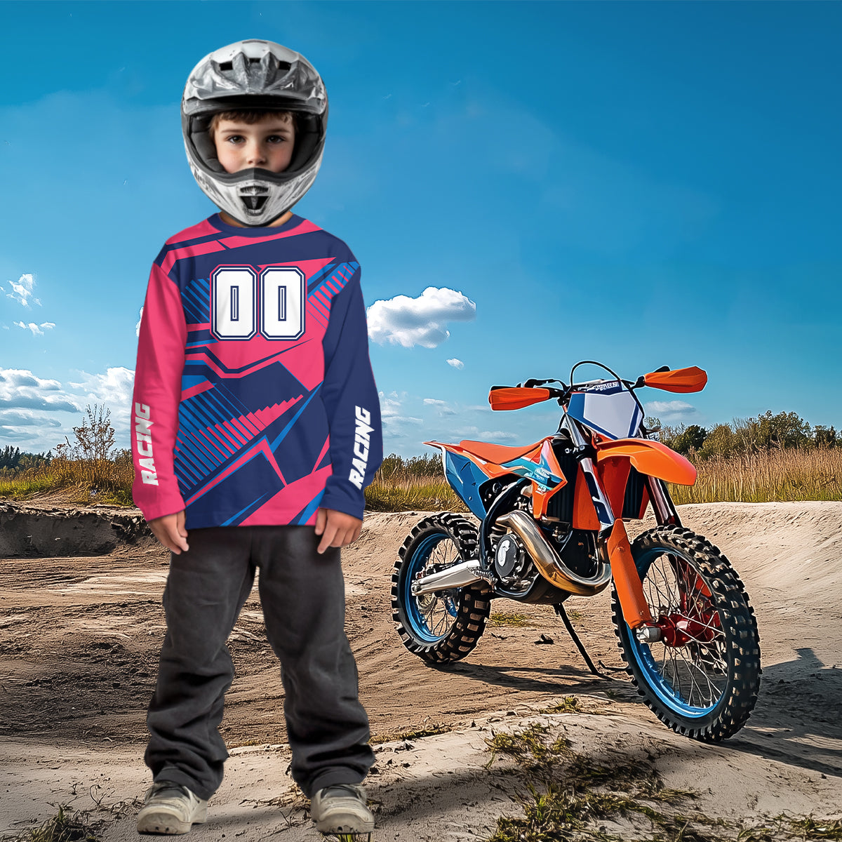 Bue and Pink Motocross Jersey Custom Dirt Bike Jersey for Women Men Kid Upf30+ XM360
