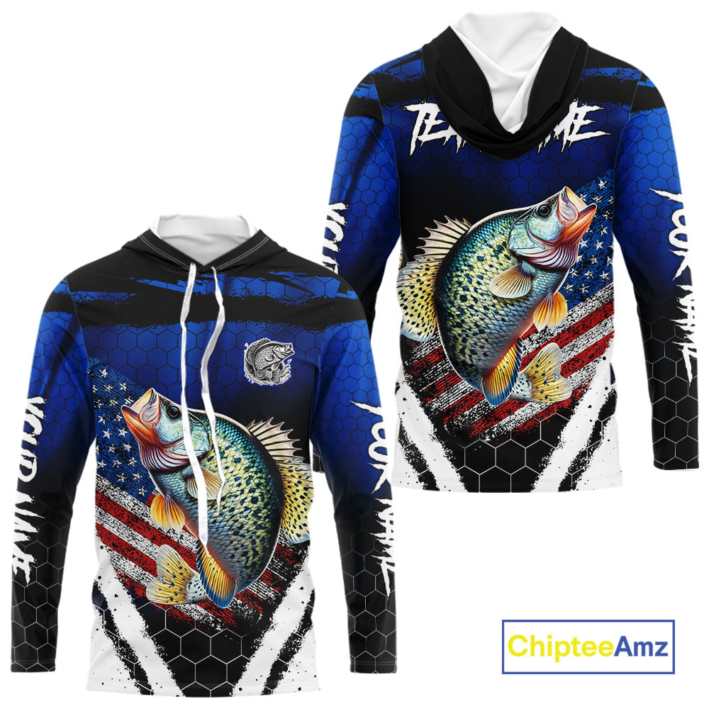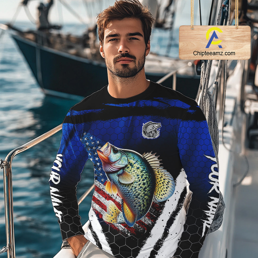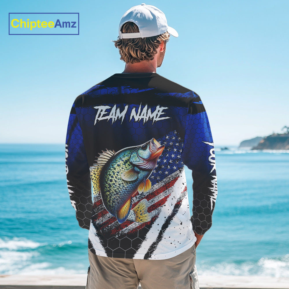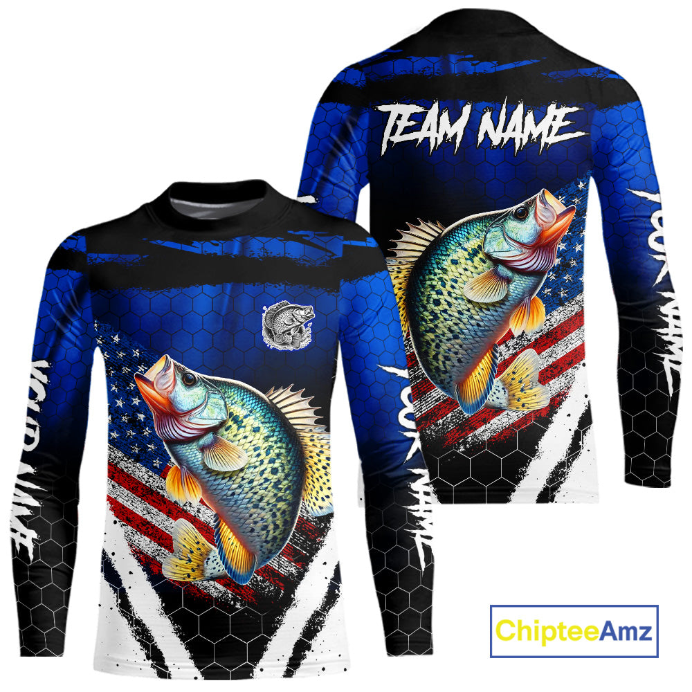 Crappie fishing American Flag Custom patriotic long sleeve team Crappie fishing shirts | Blue NQS10685
