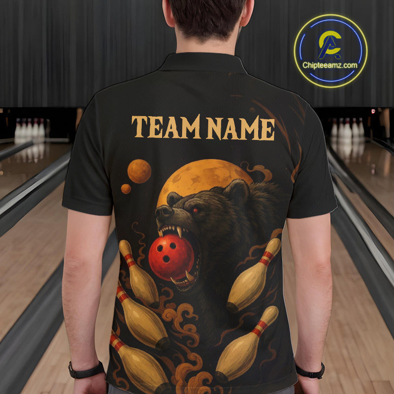 Custom Black Bear Bowling Men Polo, Quarter Zip Shirts Bear Bowling Team Jerseys NQS10781