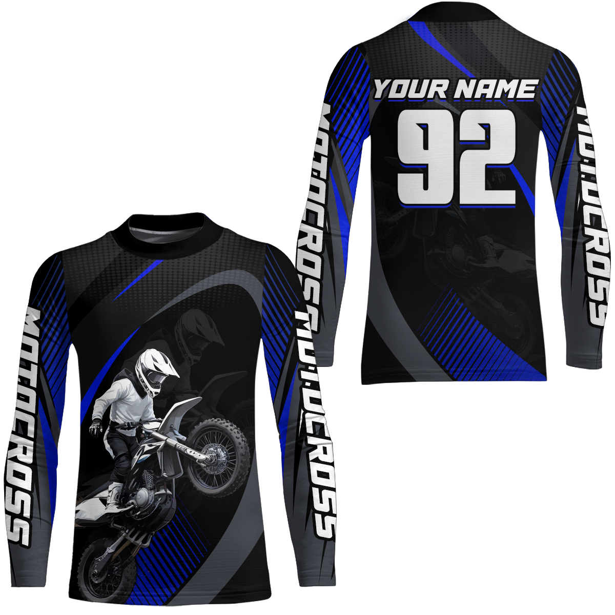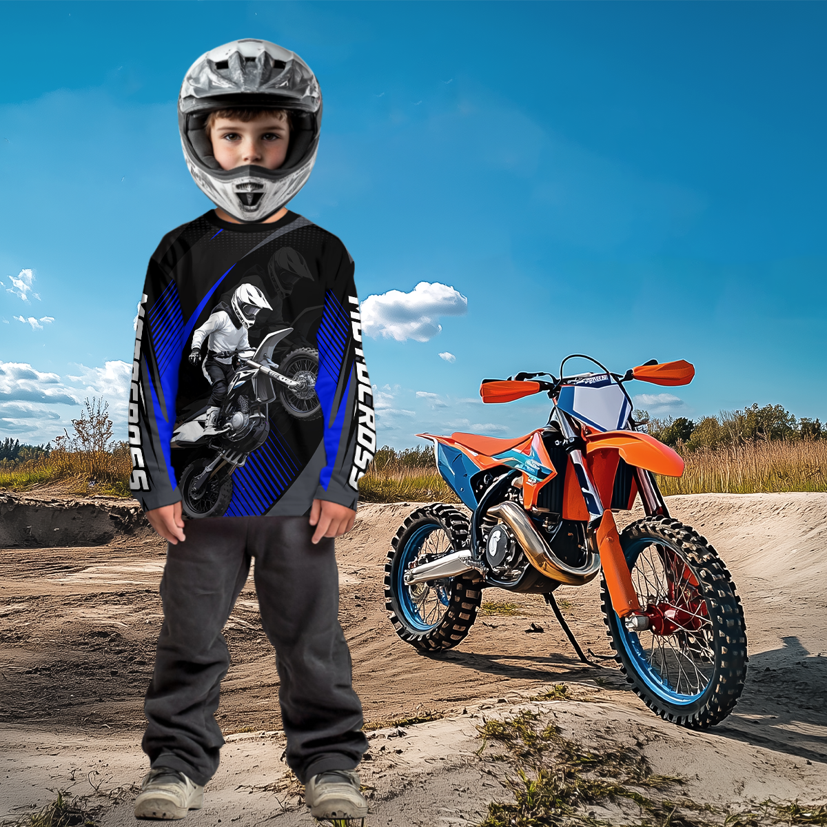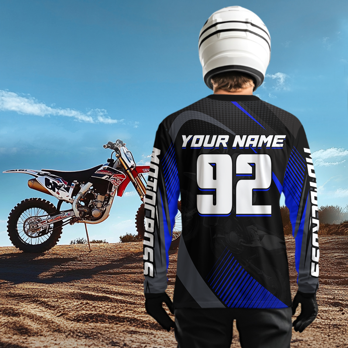 Custom Blue Motocross Shirts Racing Jersey UPF30+ Dirt Bike Jersey Kid Men Women DNT07
