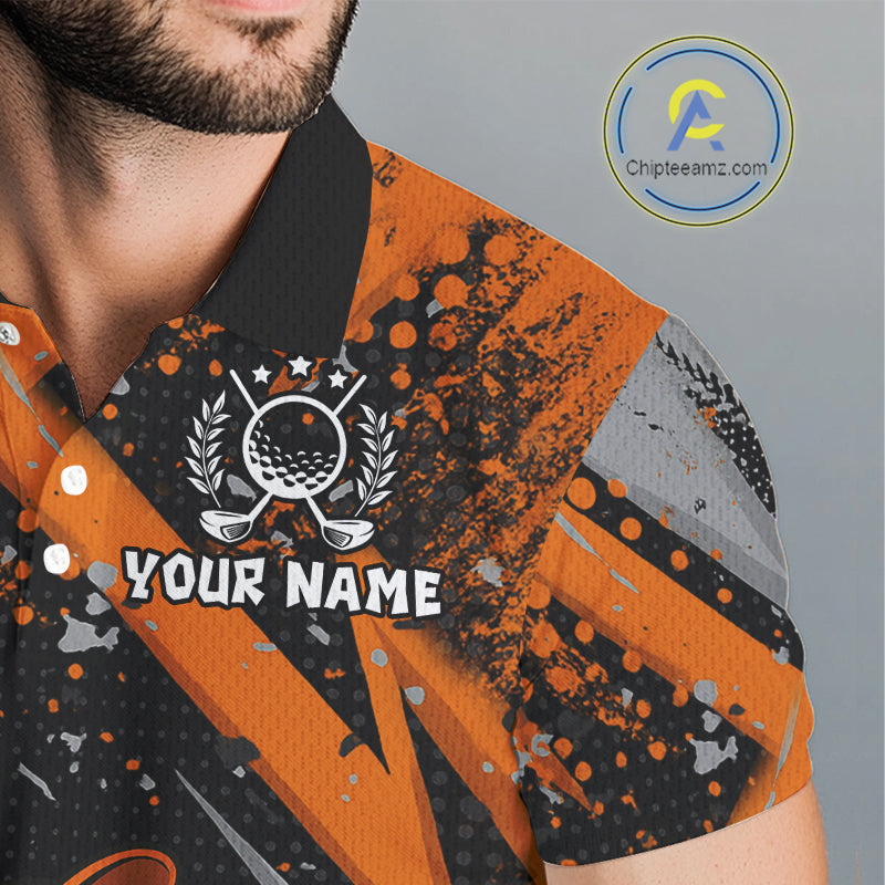Custom Funny Turkey Mens Golf tops Black & Orange camo Thanksgiving Golf polo shirt for men NQS10672