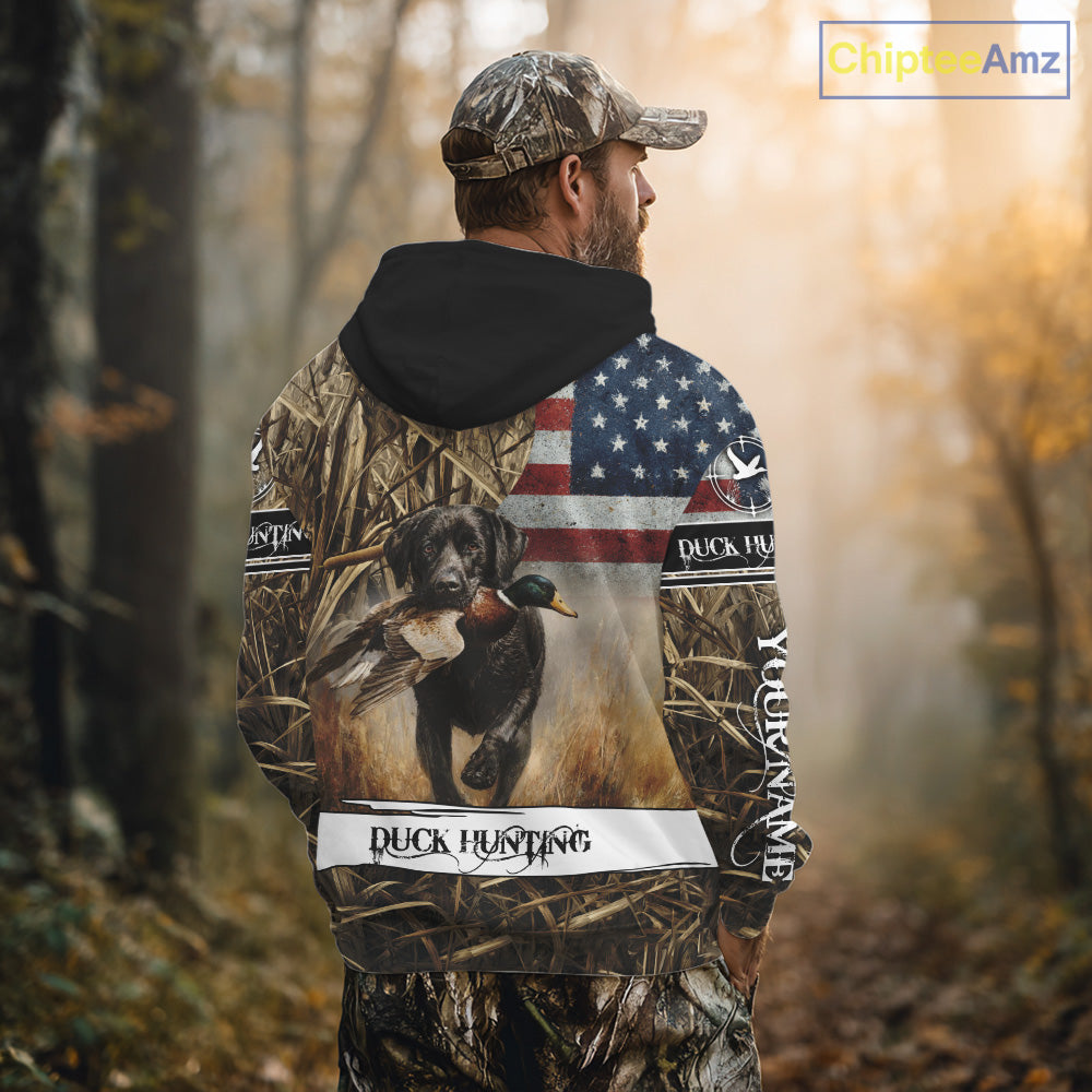 Duck Hunting Waterfowl Camo US Flag Black Labrador Retriever Dog Shirts, Duck Hunting Gifts NBT80