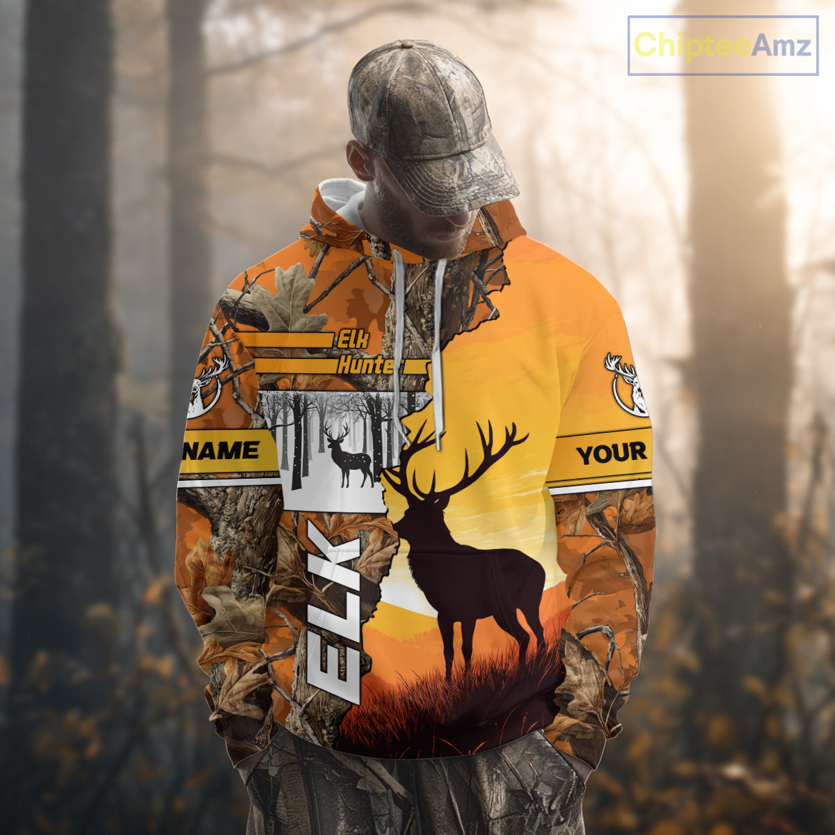 Elk Hunting Shirt Personalized 3D All Over Print Orange Autumn camo, Elk Hunting Shirt NHT137