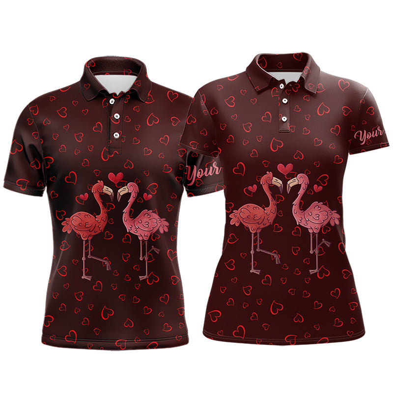 Funny Flamingo red heart pattern matching golf shirt for couple custom his and her Valentine golf tops NQS9366