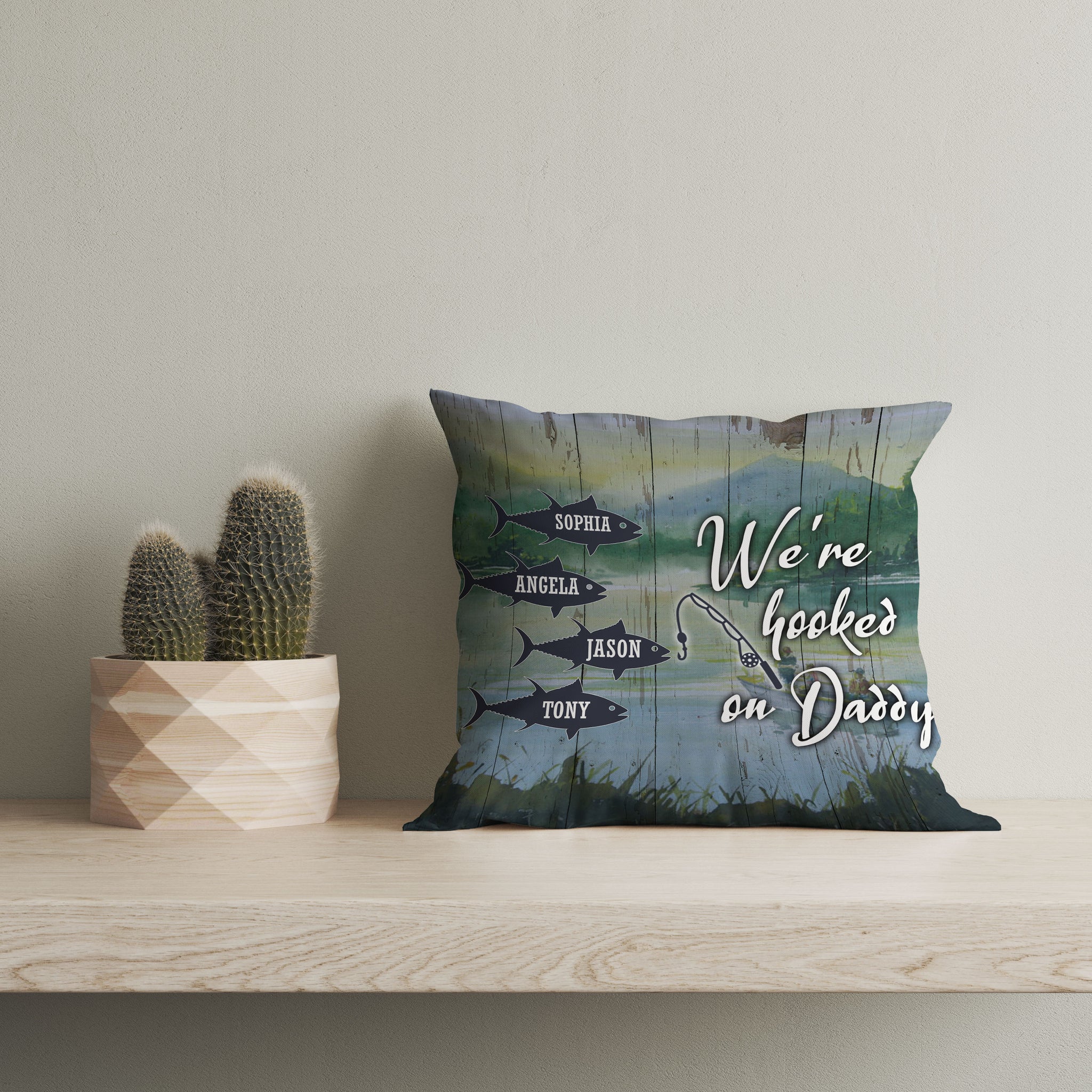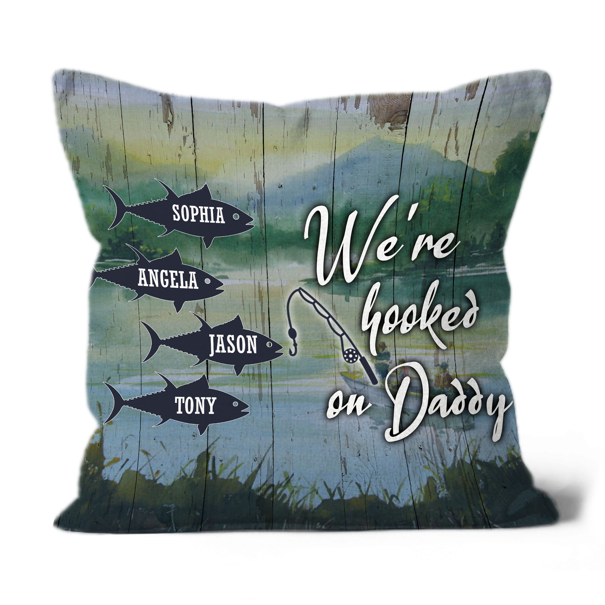Hooked on Daddy Personalized Pillow (Insert Included) Fathers Day Gift Fishing Dad All-over Print| NPL165