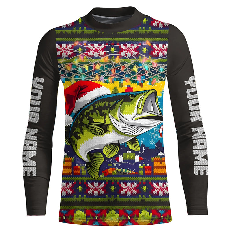 Custom Christmas Ugly Sweater Pattern Largemouth Bass Fishing Shirts, Christmas Fishing Gifts IPHW7969
