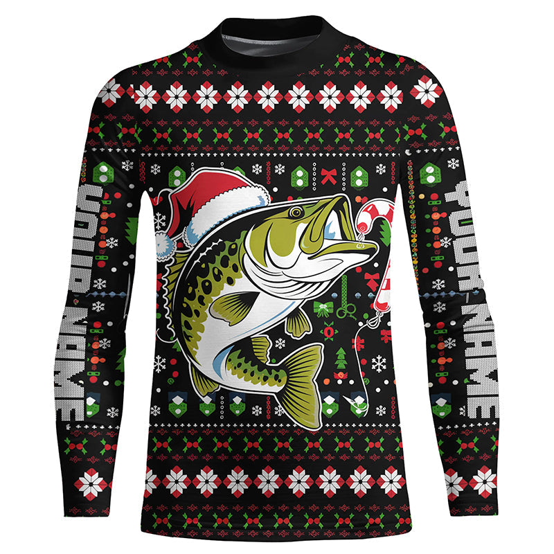 Custom Christmas Largemouth Bass Fishing Shirts, Bass Candy Cane Hook Xmas Fishing Gifts IPHW7973
