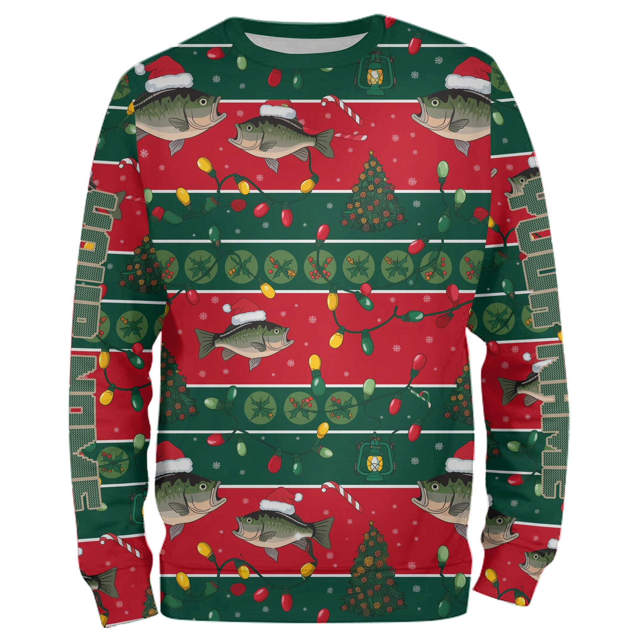 Custom Largemouth Bass Fishing Ugly Sweater Pattern Style All Over Shirts Christmas Fishing Shirt IPHW8003