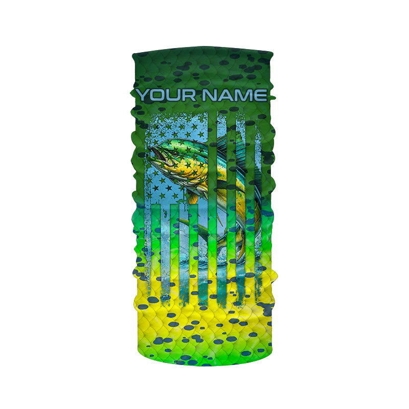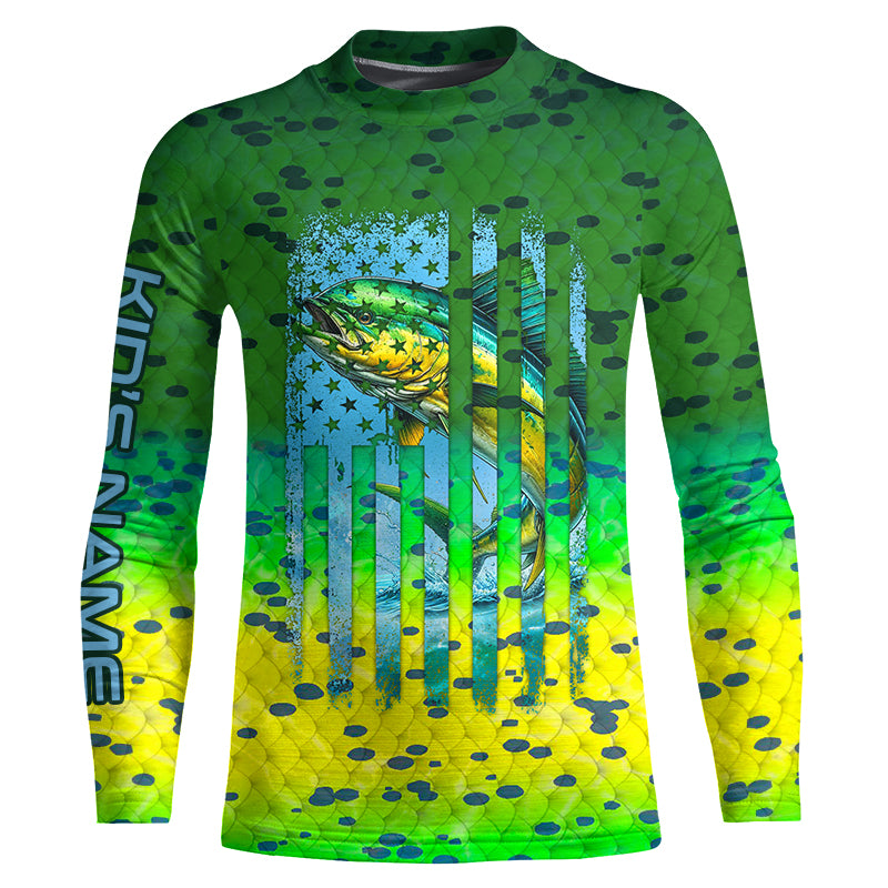 Mahi mahi ( Dorado) fishing American flag green mahi mahi scales Customized Long Sleeve Fishing Shirts NQS2182