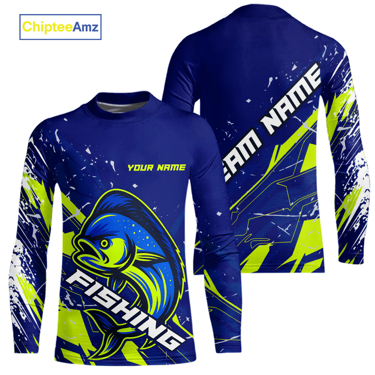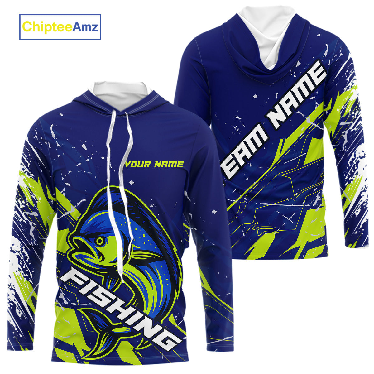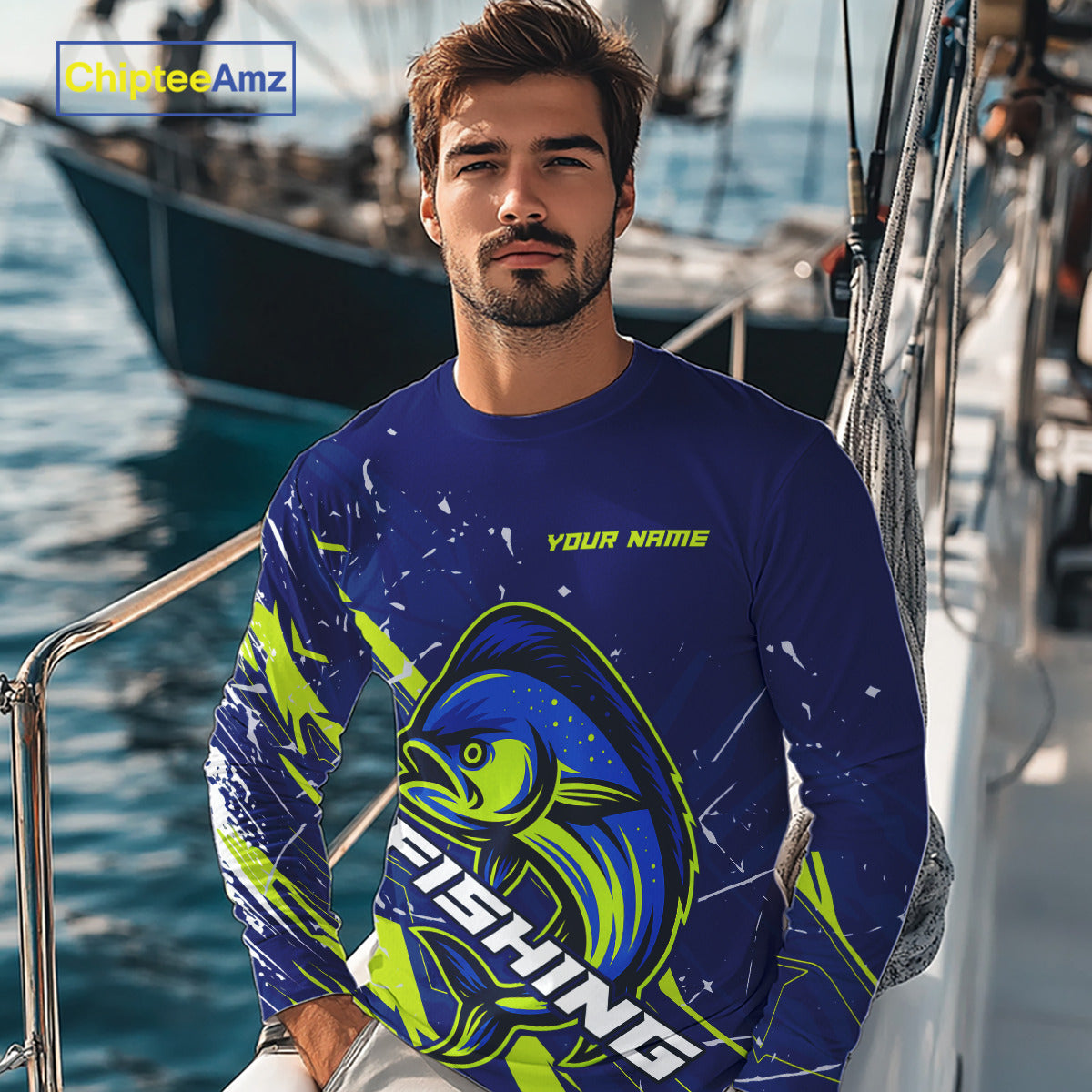 Mahi Mahi fishing sun protection shirts custom name blue and green fishing jerseys for team offshore NQS10331