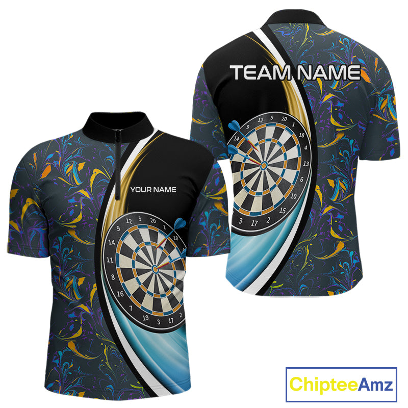 Funny Floral Marbling Pattern Custom Darts Shirt For Men, Team Polo & Quarter Zip Darts Jersey TDM4916