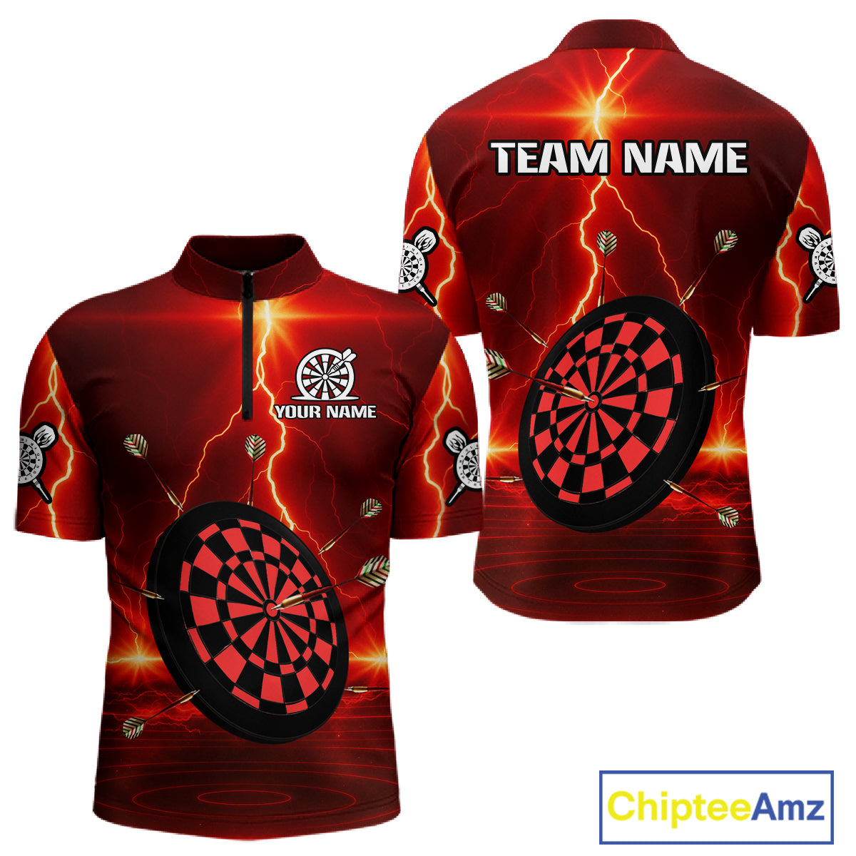 Personalized Dartboard Thunder Lightning Red Darts Shirt For Men Custom Glowing Darts Team Jersey TDM4919
