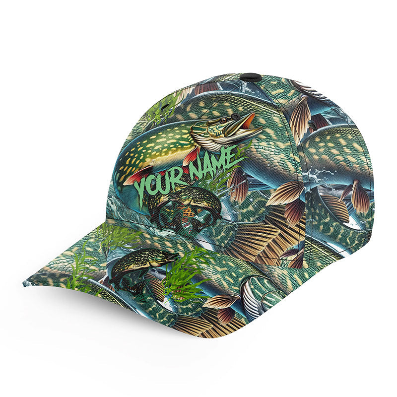 Northern Pike fishing green scale Custom fishing hat Unisex Fishing Baseball Angler hat cap NQS9563