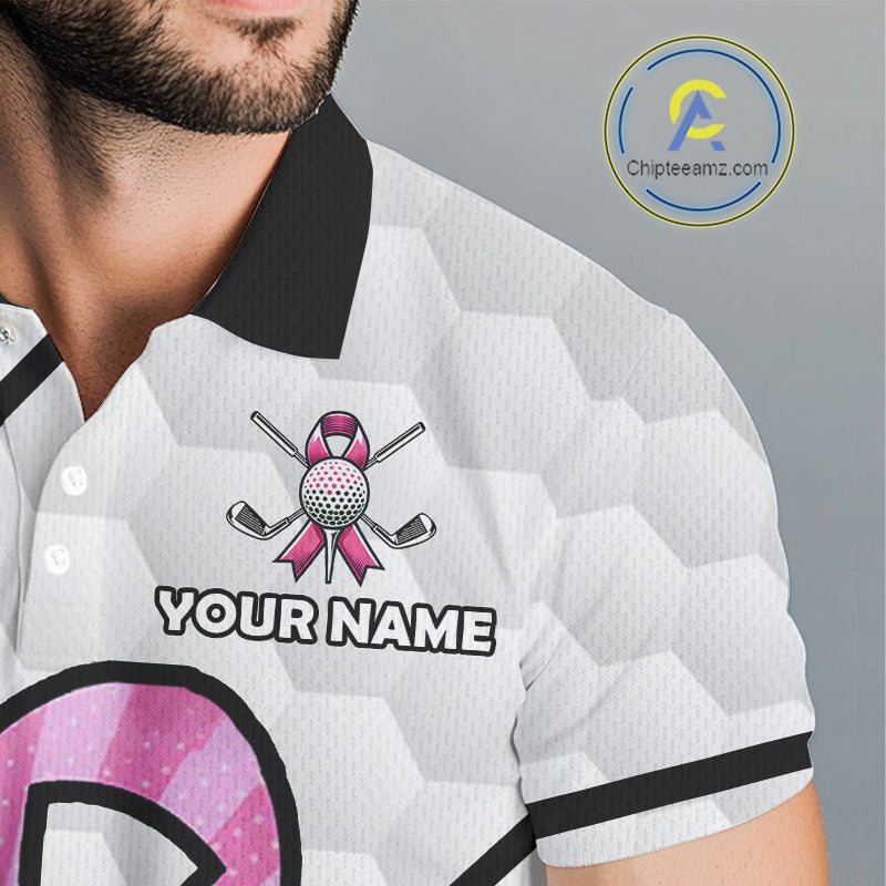 Personalized Pink Ribbons Camo Golf Polo Shirts for Men, Custom breast cancer Golf Team shirts NQS10534