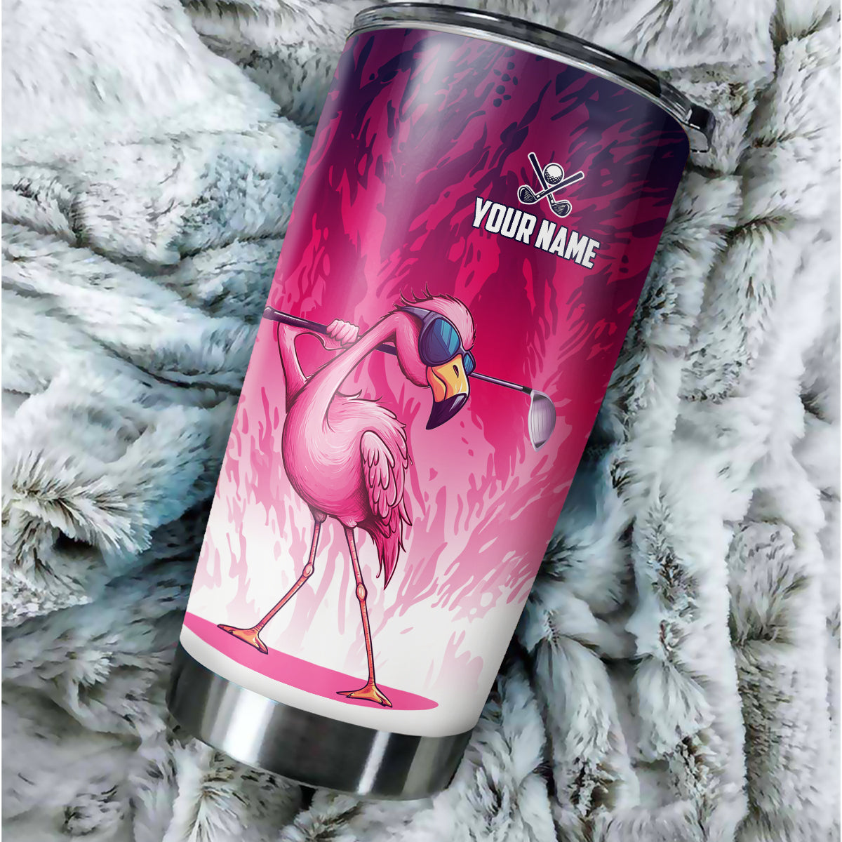 Pink Camo Flamingo Flame Golf Ball Custom Funny Stainless Steel Tumbler Cup - personalized golf gifts NQS9875