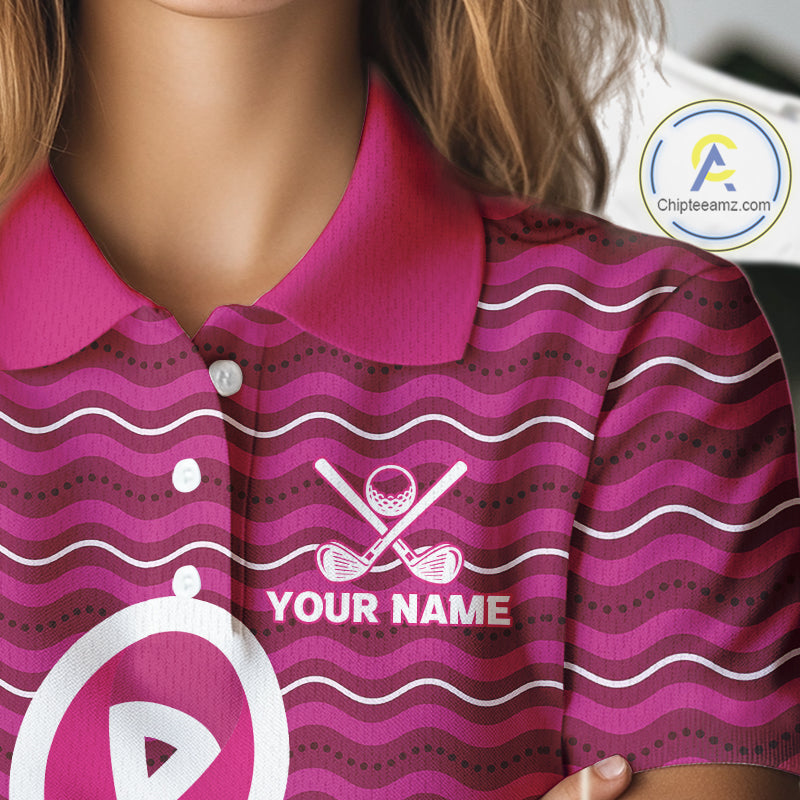 Pink ribbon Women polo golf shirts Custom Breast cancer awareness team golf attire for ladies NQS10509